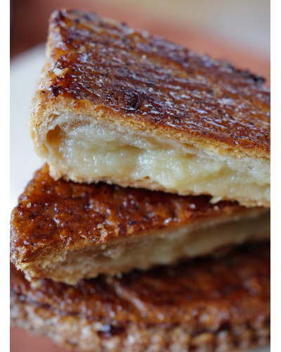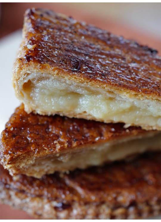 Pâte feuilletée caramélisée à la vanille, compotée de pommes à la vanille.